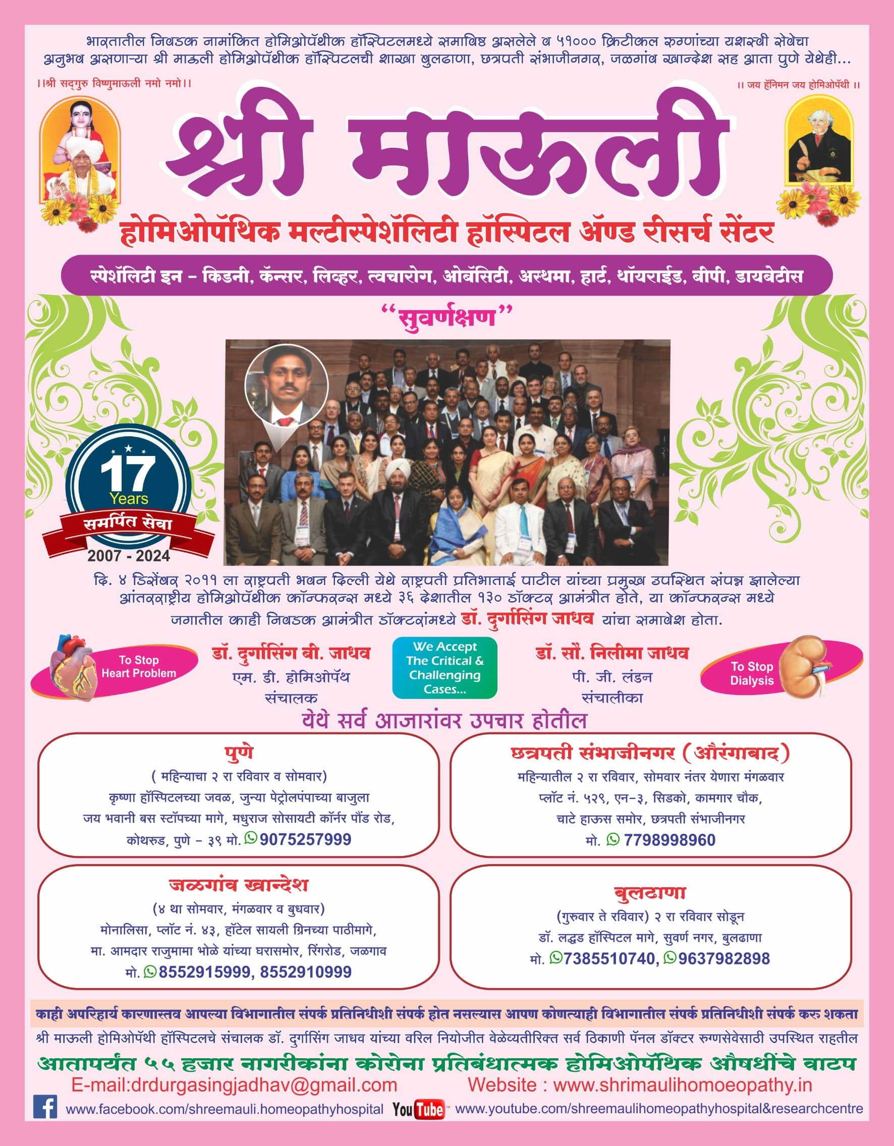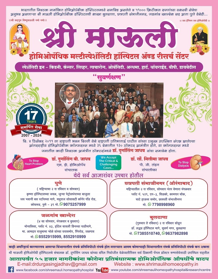 भारतातील निवडक नामांकित होमिओपॅथीक हॉस्पिटलमध्ये समाविष्ठ असलेले व ५५,०००+ क्रिटीकल रुग्णांच्या यशस्वी सेवेचा अनुभव
