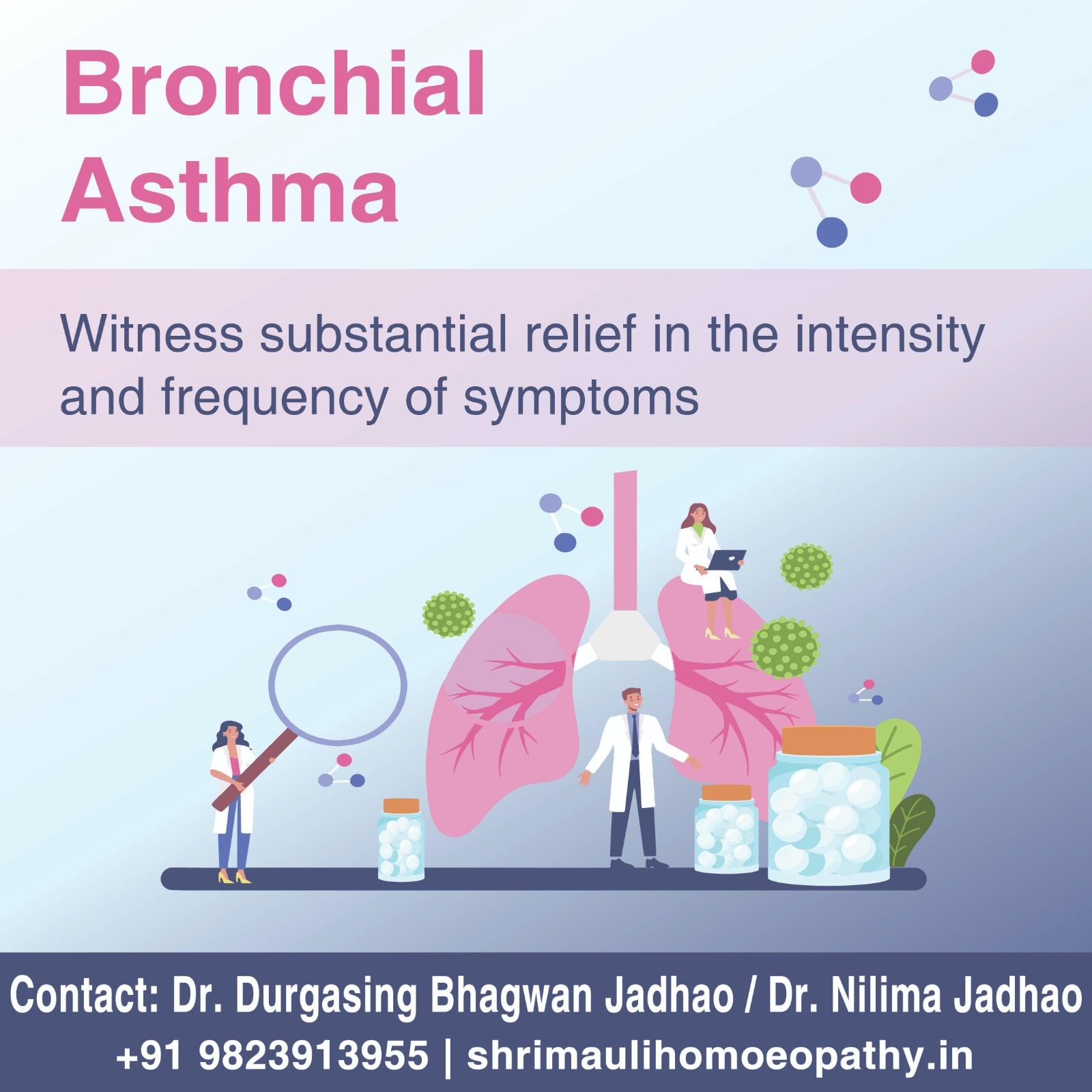 - स्पेशलिटी ईन - त्वचारोग, ओबॅसिटी, अस्थमा, हार्ट, थॉयराईड, बीपी, डायबेटीस, कॅन्सर, किडनी